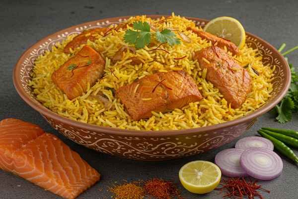 Basmati rice cooked with tilapia fish and Indian herbs.